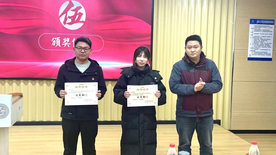 各部门轮流汇报完毕后,团总支书记夏铭老师宣读了本学期团总支、学生会的评优名单(办公室、文体部获优秀部门;谭建雄、孙悦等5人获先进个人;邹齐嫄、万若欣等10人获优秀工作人员)并给予表彰颁奖。