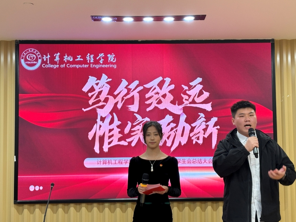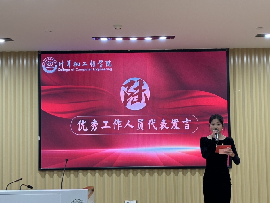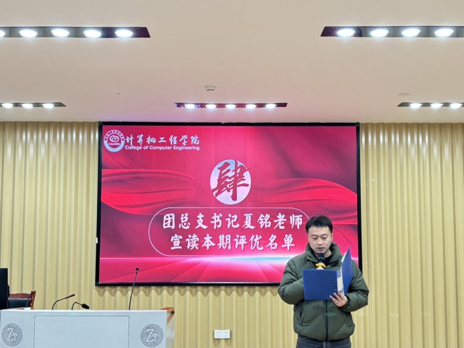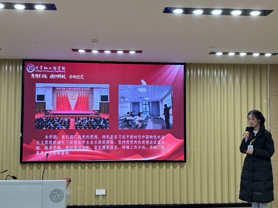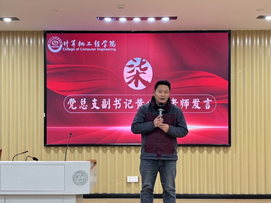 大会最后,党总支副书记黄世建老师发言。黄世建老师肯定了这学期以来团总支、学生会各部门所展示的优秀成果。以及对获奖的部门、先进个人、优秀工作人员进行了肯定以及赞扬。他并表示团总支、学生会在未来为学院师生服务的工作当中会有更多的收获,不管是对自我学习的成绩的高要求,或者是对于工作能力的提高,都希望在座的团体干部能够走在最前面。并希望在下一个年度,计算机工程学院团总支、学生会提前做好相应的准备,以求能够更好的去结合2025年的学校以及学院工作重点,并在组织建设等方面获取更好的成效,做好计算机工程学院建院十周年相应的一些庆典活动。