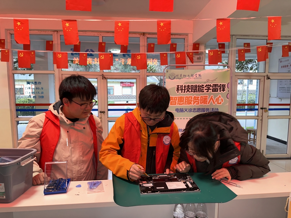 为弘扬新时代雷锋精神,发挥专业优势服务师生,3月19日至20日,由计算机工程学院主办的“科技赋能学雷锋,智惠服务暖人心”电脑义诊志愿服务活动在主会场行知广场及慧园二舍、智园十五舍1楼服务大厅同步开展,活动以技术赋能公益,累计服务师生数百人次,切实解决电脑使用难题,获得广泛好评。