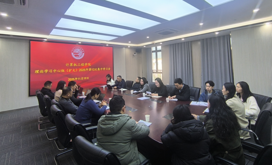 11月19日,计算机工程学院在15302召开了理论学习中心组(扩大)2025年第十二次集中学习会。学院党总支委员、党支部书记、园区特设党支部书记、专职组织员、教师党员代表参加学习。
