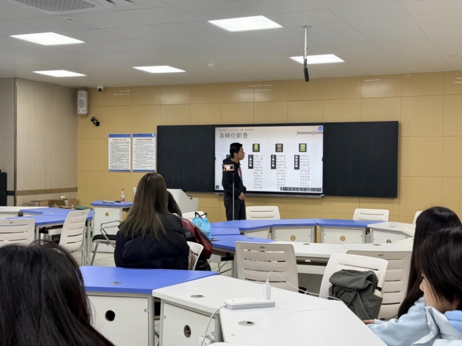 为提升学子思辨能力与论辩技巧,一场以“思辨人文,以论会友”为主题的辩论会前期培训会于2025年11月26日中午在朝晖楼举办。本次培训会由黄圣翰担任主讲,吸引了众多对辩论感兴趣的同学积极参与。