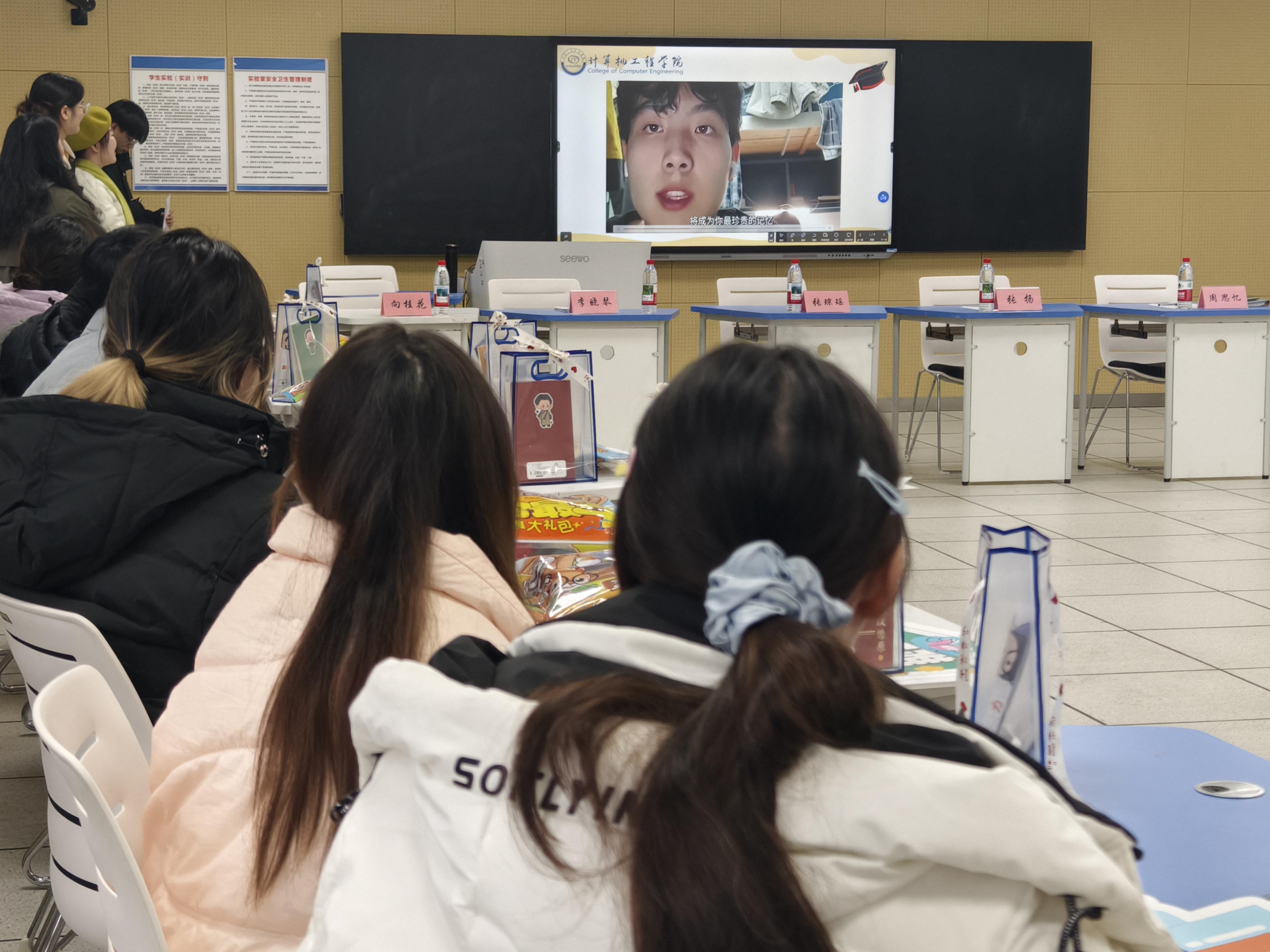 最后,备考学子共同观看了考研上岸学长学姐的寄语视频。视频中,学长学姐结合自身备考经历,分享了时间规划、科目复习、心态调节等实用经验,一句句真挚的鼓励、一个个具体的建议,为正在埋头苦读的学子们注入了温暖而坚定的力量。
