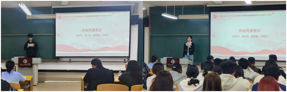 学员代表陈梦巧、刘兴玲、晁重崛、李婧怡依次发言。他们结合自身成长经历,分享了对党的认识、入党初心及参训期待,表达了以饱满热情投入理论学习、以实际行动向党组织靠拢的坚定决心。